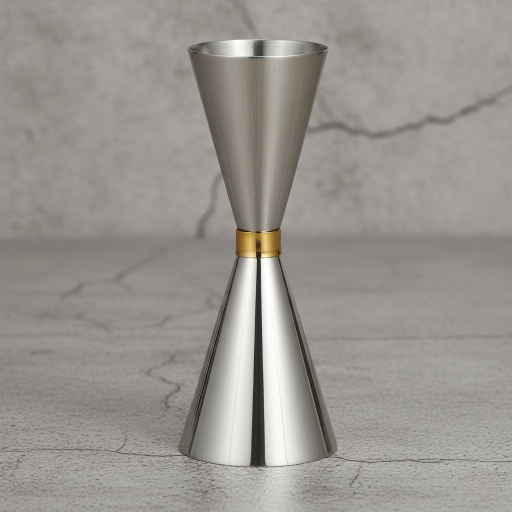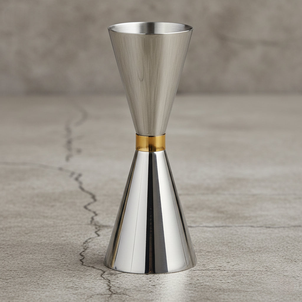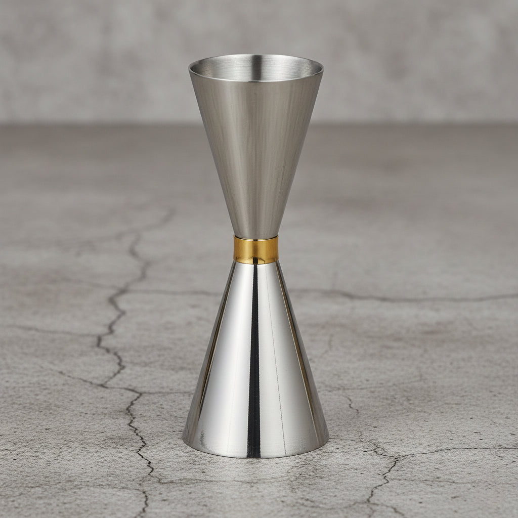 Unleash your inner cocktail warrior with the Samurai Steel Japanese Jigger — forged from stainless steel, trimmed with a golden accent, and designed for deadly precision.